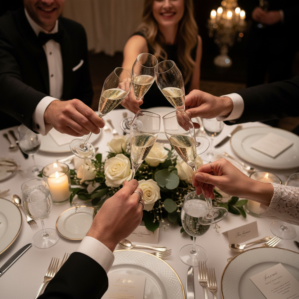 Schenk champagne rustig langs de binnenkant van het glas om het bruisen te behouden en serveer op een temperatuur van 6–8°C.