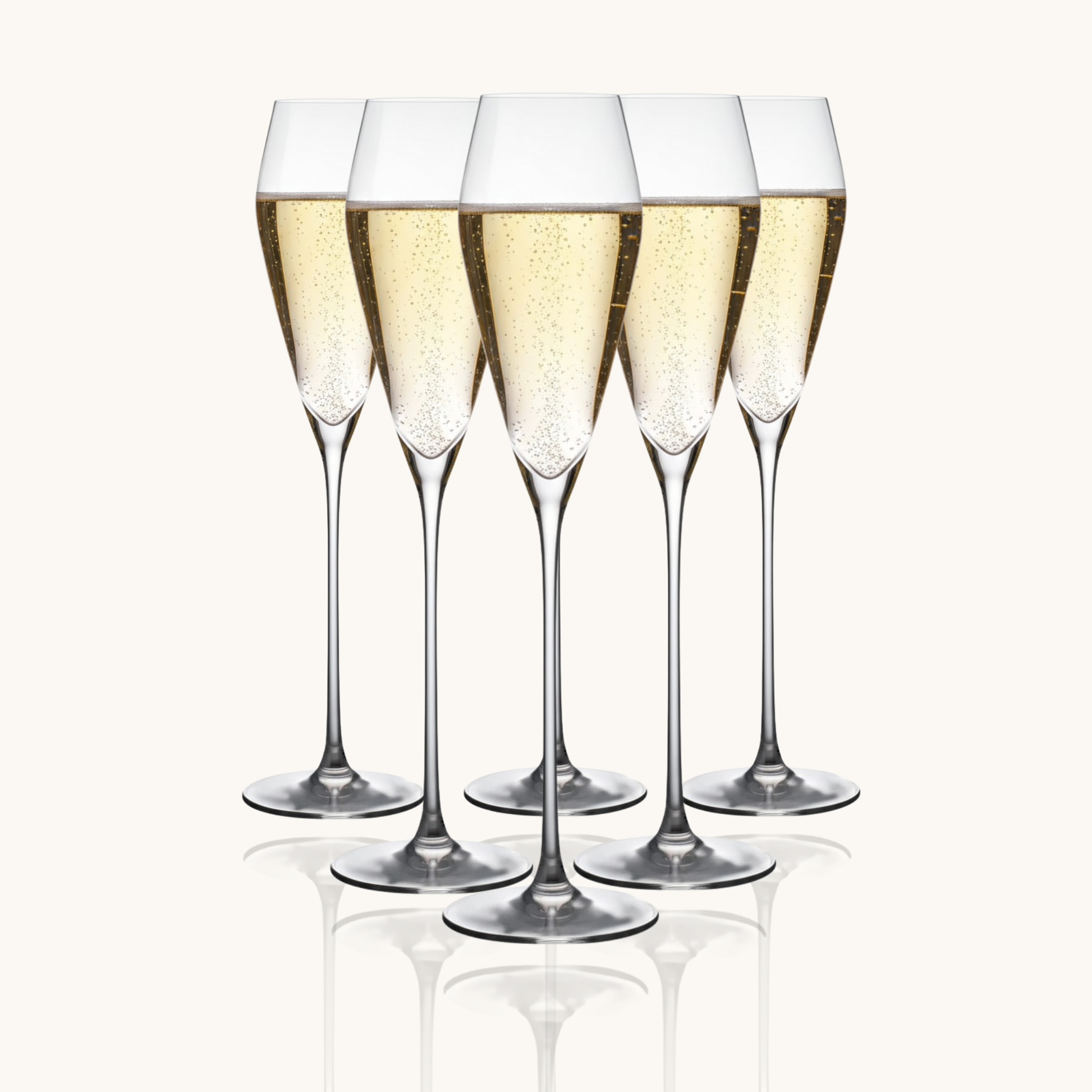 De smalle kelk houdt de bubbels langer vast en bundelt de aroma’s richting de neus. Zo blijft de champagne levendig en elegant tot de laatste slok.